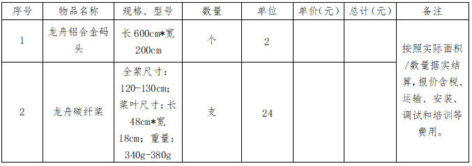 pp电子官方网站龙舟铝合金码头、龙舟碳纤桨采购项目询价公告