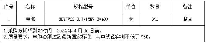 安徽医科大学临床医学院二期高压电缆项目采购一览表
