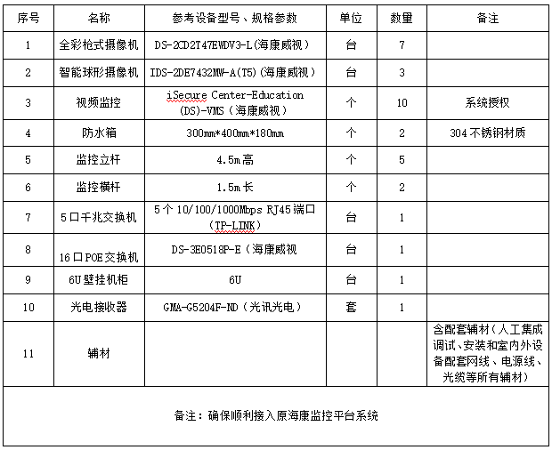 按照学校要求,完成东校区北门室外监控项目调试、安装(详见下表)。