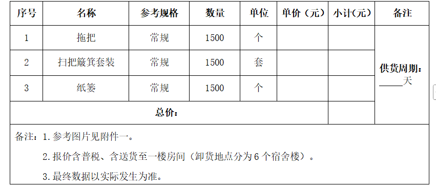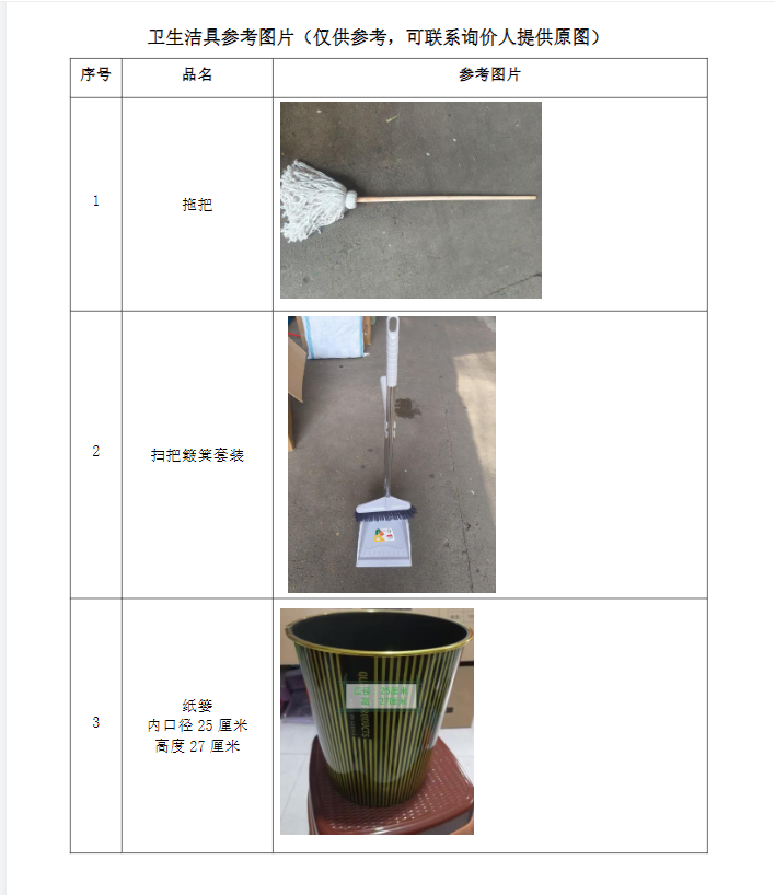 宿舍拖把、纸篓、扫把簸箕套装采购项目询价公告
