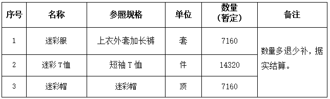 2025级新生迷彩服、迷彩T恤和迷彩帽项目招标公告