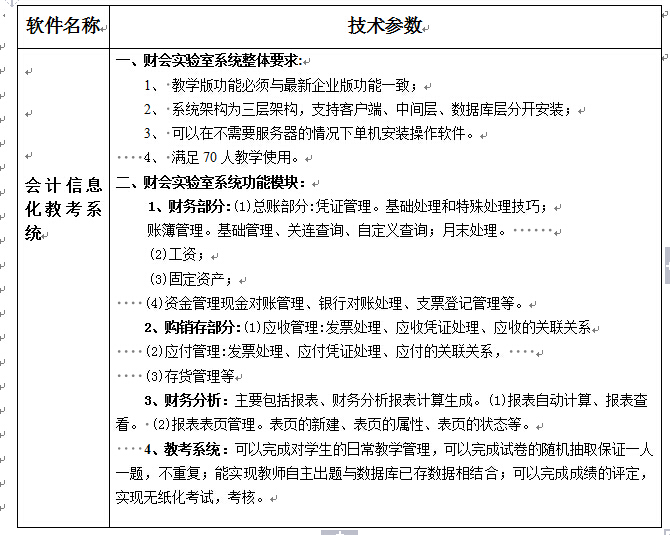 2、招标内容:会计信息化教考系统软件1套