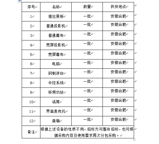 2、招标内容:多媒体设备一批