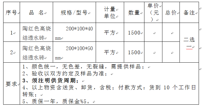 pp电子官方网站陶红色高烧结透水砖招标公告