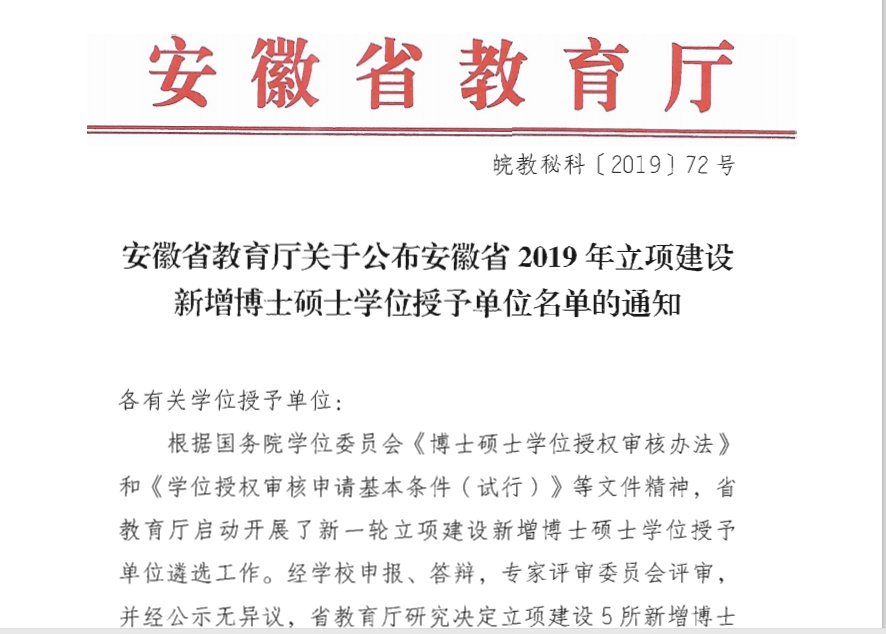 pp电子官方网站成功获批安徽省新增硕士学位授予立项建设单位