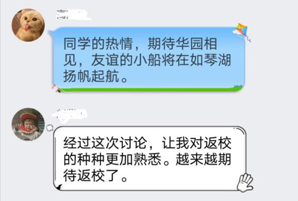 遵照学生处心理健康教育中心举办主题为“心灵疫战, 安心你我” 第十五届大学生心理健康宣传月活动要求, 于5月18日-22日返校前, 华园室友们开展一场云端卧谈, 共话心情, 拉近彼此心的距离, 携手回归。活动参与度很高,学生颇有收获。