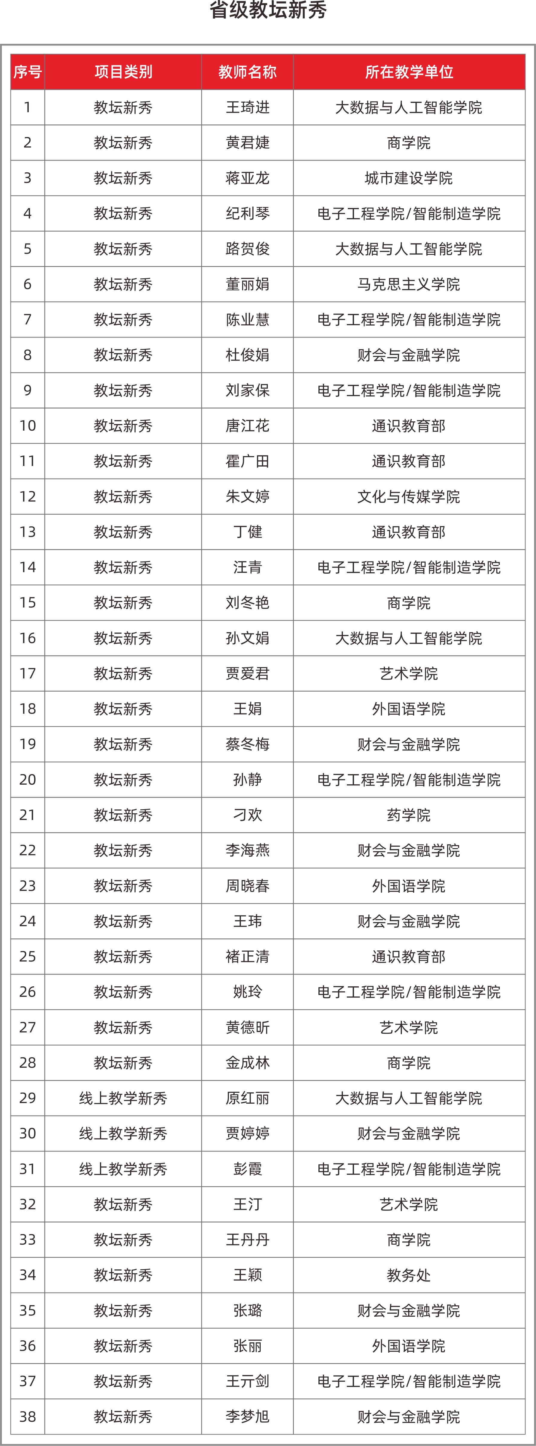 为打造高水平师资队伍,全面提升教师教学能力、产学研用能力,学校构建了分层分类的教师培养培训体系。通过岗前培训夯实教学基本功,依托教学能力发展中心开展“教学沙龙”“教学工作坊”“名师讲坛”等在职研修活动,并积极鼓励支持教师赴企业实践、行业机构挂职。目前已形成"省级教学名师-校级最受欢迎教师-青年教学骨干"三级梯队,目前pp电子拥有省级教学名师、优秀教师、课程思政教学名师等35人,教坛新秀38人。
