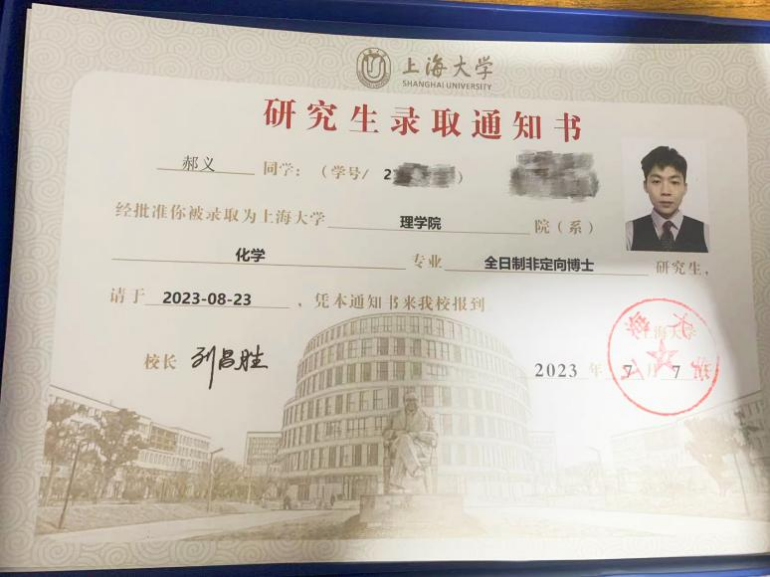 (郝义校友博士录取通知书)