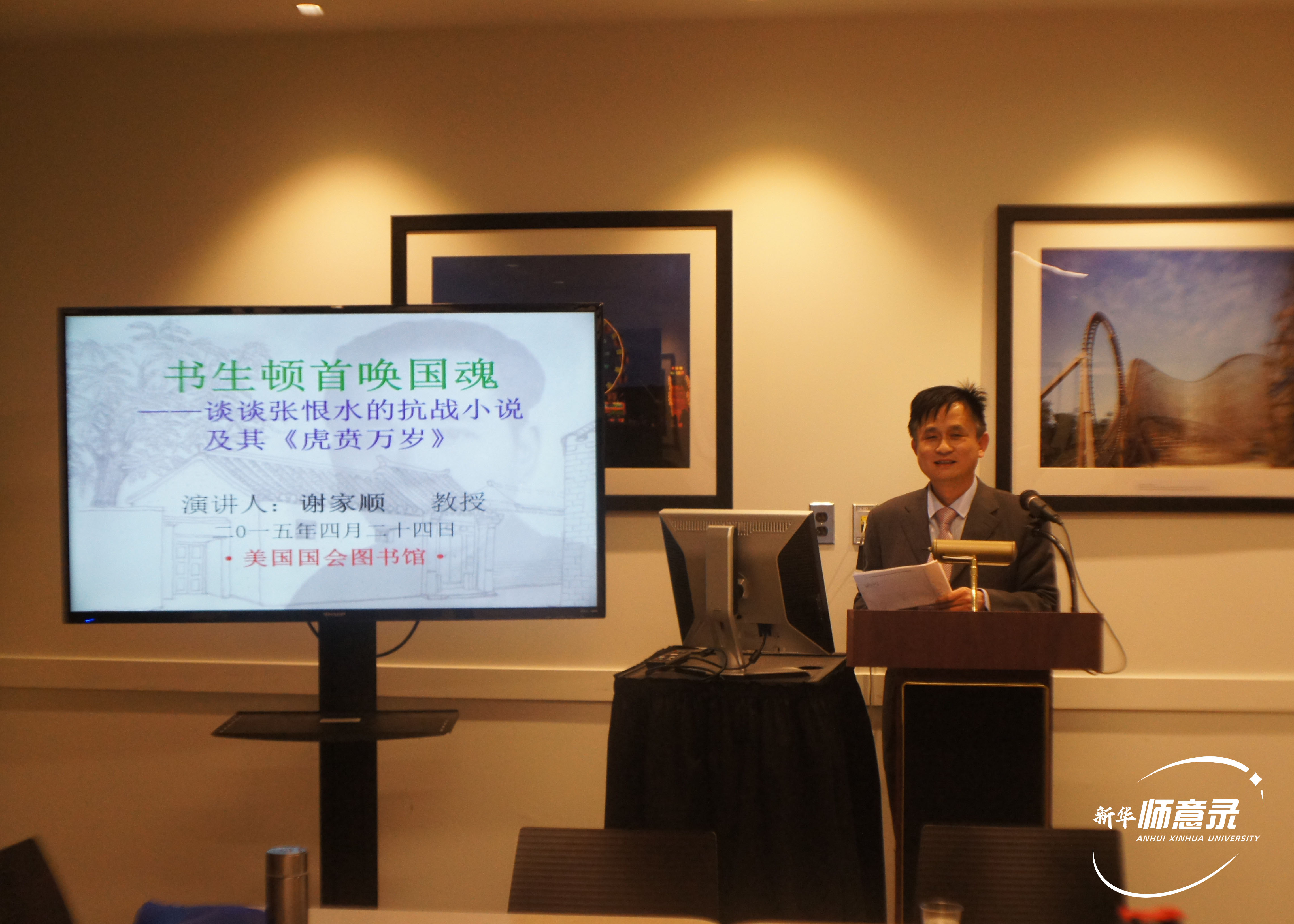 这些年,他参与并策划多场学术盛会,从2018年“年谱与新文学研究的经典化”学术论坛,到2024年“从安徽走向世界:张恨水与百年中国新文学”国际学术研讨会,每场都吸引国内外数十位学者参与。大家不再局限于讨论小说技巧,更挖掘作品中的家国情怀、文化传承,探讨对当代通俗文学创作的启示,拓宽了张恨水研究的视野。2015年,他远赴美国讲学,分享张恨水的抗战文学,当美国学者通过《虎贲万岁》读懂“中国文人的抗日担当”时,他更加确信:“好的文学没有国界,张恨水的作品里藏着中国人的精神底色,值得被世界看见。”