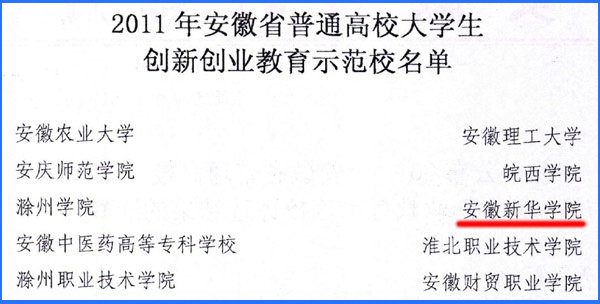 pp电子获评2011年安徽省普通高校大学生创新创业示范校
