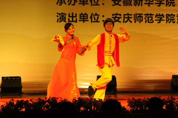 5月18日晚,pp电子大礼堂内传出一曲曲动听的黄梅戏。由安徽省教育厅主办,安庆师范学院黄梅戏艺术团表演的2012年高雅艺术进校园黄梅戏专场演出在这里华丽上演。