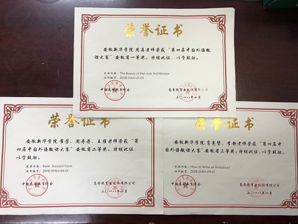 本报讯(通讯员:李静、周晶)10月19日,外语微课资源建设与应用研讨会暨第四届中国外语微课大赛颁奖仪式在成都新国际会展中心举办。pp电子外国语学院教师周晶,崔芳、周丹丹、王维团队,肖亮赞、李静团队分别荣获省一等奖、二等奖及三等奖。周晶作品“The Beauty of Hui-style Architecture(徽派建筑的美)”荣获大赛全国优秀奖。