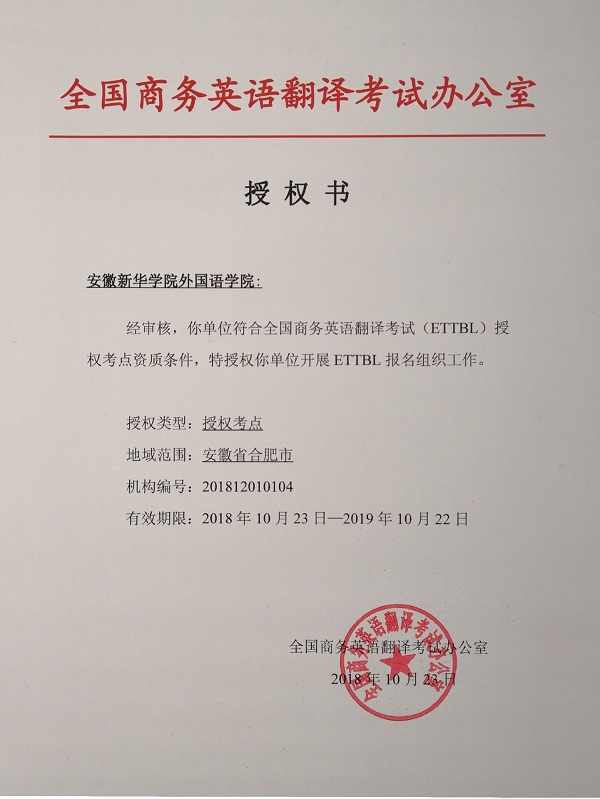 安徽省首家全国商务英语翻译考试授权考点落户pp电子外国语学院