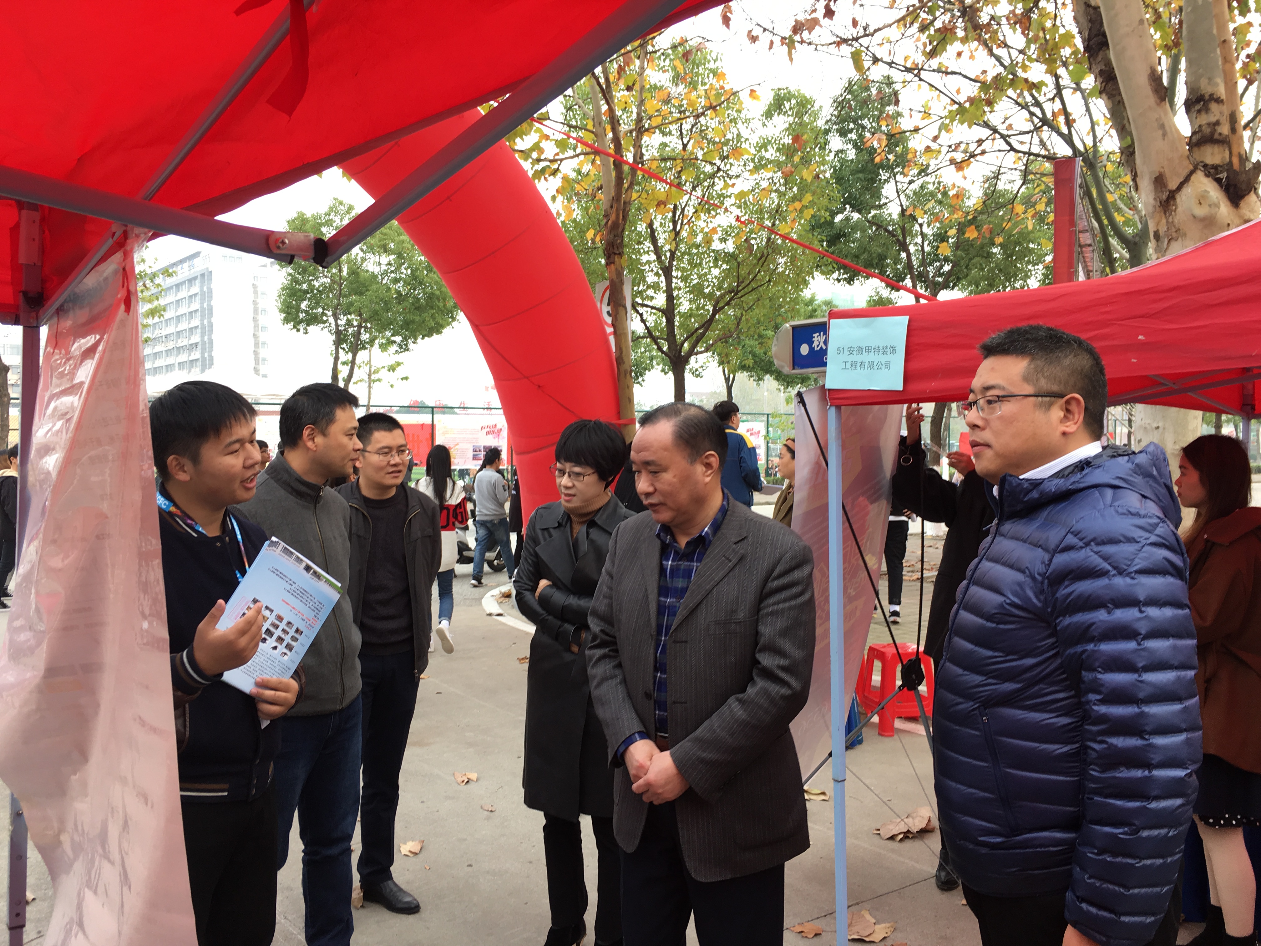 本网讯 (通讯员:龚欣)为进一步搭建毕业生和企业交流平台,为毕业生提供更优质的就业岗位,推动实现毕业生更高质量更充分就业,11月21日下午,安徽省高技能应用型毕业生就业市场成功在pp电子举办,省大中专毕业生就业指导中心主任袁江林、发展培训部部长王素苗在pp电子党委书记储国定、常务副校长王丽、副校长马琪等的陪同下深入现场指导并进行座谈交流。