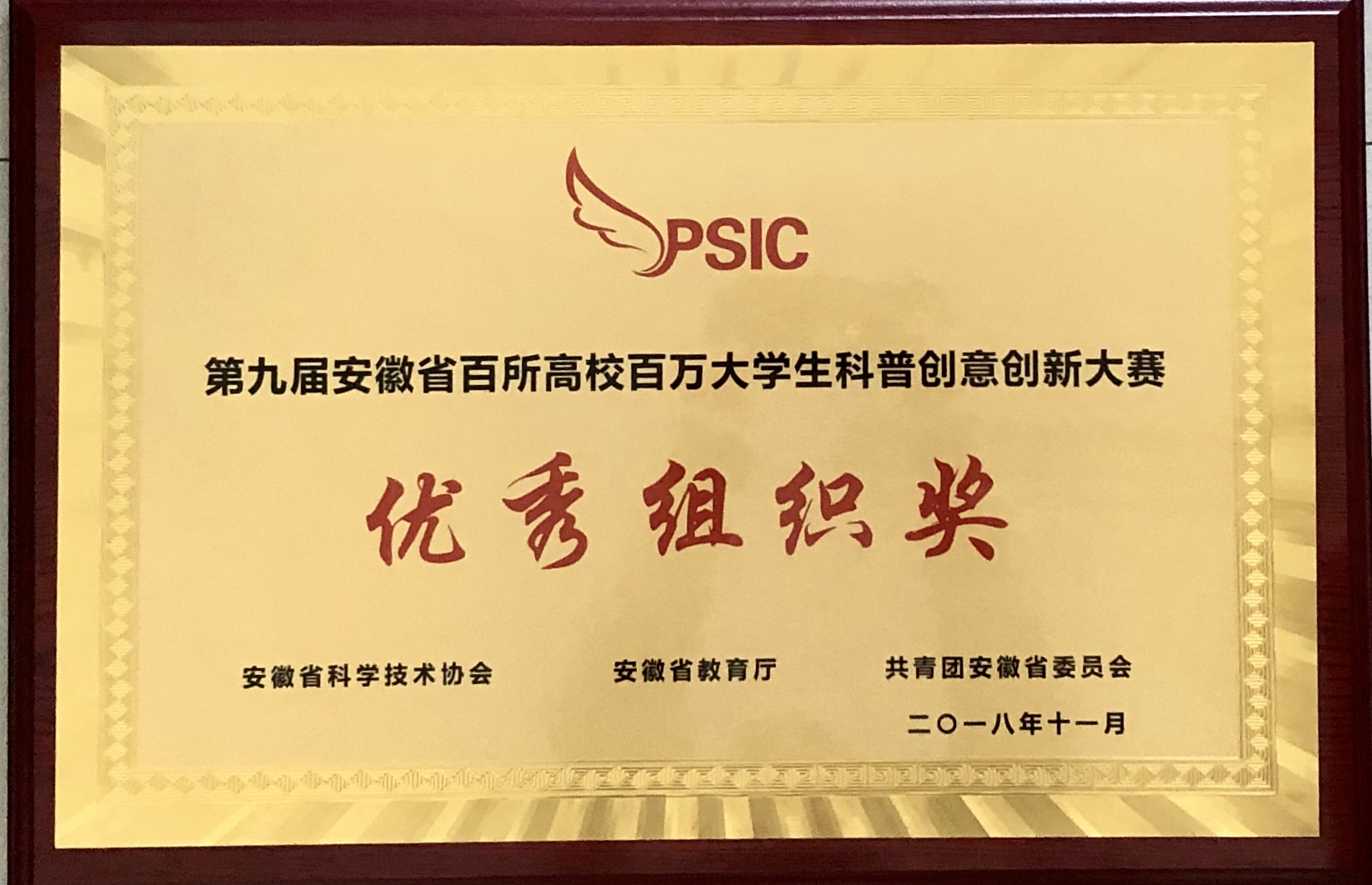 pp电子荣获第九届安徽省百所高校百万大学生科普创新创意大赛“优秀组织奖”