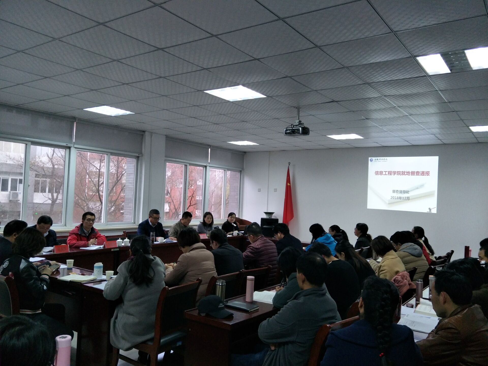 接着,贺行佳代表信息工程学院向督察办全体同志的辛勤工作表示感谢。他表示,通报内容涉及面广,针对性强,暴露的问题折射出部分老师在工作中存在责任心不强问题,同时也暴露出管理过程中的不足,全院上下应该认真反思,以问题为导向,抓整改,抓落实,没有暴露出来的问题要学会举一反三,以点带面,真正做到以督促改,以督促建。方纯洁表示:“小细节反映出大问题,只有规范才能出质量,有态度才会有效果,真改革才能提水平,希望信息工程学院对暴露出来的问题要持续改进,完善管理流程,精细化工作。”