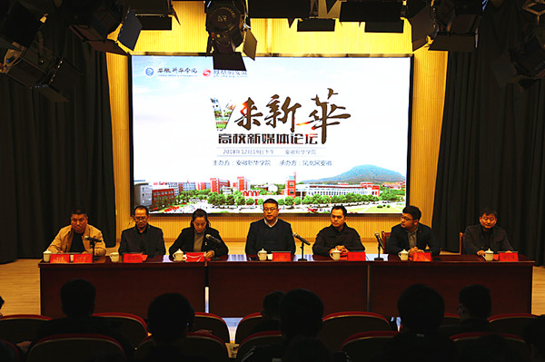 本网讯(文:赵彩虹 图:金政)12月19日下午,“V来新华”高校新媒体发展论坛在文传演播厅举行,副校长马琪,安徽省网络媒体协会会长、人民网安徽运营总监宫礼,凤凰网安徽总经理兼总编辑吴昊,校长助理黄君婕,文化与新闻传播学院执行院长翟荣兵,凤凰网安徽营销中心副总经理谢长城出席,合肥“大V”,各职能部门、二级学院相关人员及学生代表参加。本次论坛由宣传处处长管玉中主持。