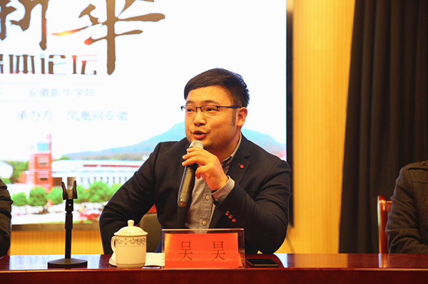 随后,吴昊代表凤凰网安徽致辞。他从新媒体形态的发展角度出发,强调了新媒体思维的重要性。他表示,新媒体思维即为学习的思维,凤凰安徽将继续关注高校的发展,希望日后能够与pp电子形成更加紧密的合作关系,利用凤凰网平台优势,诠释新华,讲好新华教育发展故事。