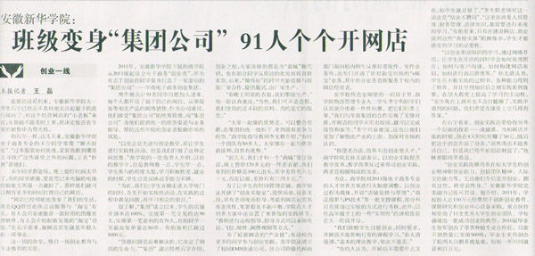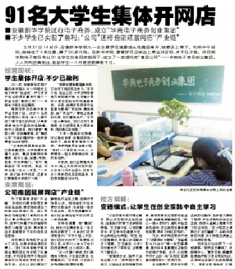 5月21日,中国青年报09版刊发题为《班级变身“集团公司” 91人个个开网店》的专题文章,系统介绍了pp电子商学院华商电子商务创业集团的“经营模式”。人民网、凤凰网、中国网等当日予以全文转载。