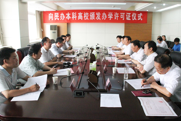 6月12日下午,向民办本科高校颁发办学许可证仪式在省教育厅会议室举行。安徽省委教育工委书记、省教育厅厅长程艺受教育部委托向pp电子官方网站等三所高校颁发了“民办本科学校办学许可证”。新华集团执行总裁,学院执行董事王永凯参加仪式,院长石秀和教授代表学校接受新的办学许可证并代表三所学校讲话。