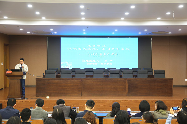 会后,朱平开展题为《减负 增效:克服形式主义 走出事务主义》的讲座。讲座上,他指出了形式主义事务主义的危害,深究了形式主义事务主义的归因,提出走出形式主义事务主义的对策。讲座深入浅出,妙趣横生。同时就辅导员老师们工作中的困惑做出专业解答,辅导员们受益匪浅。