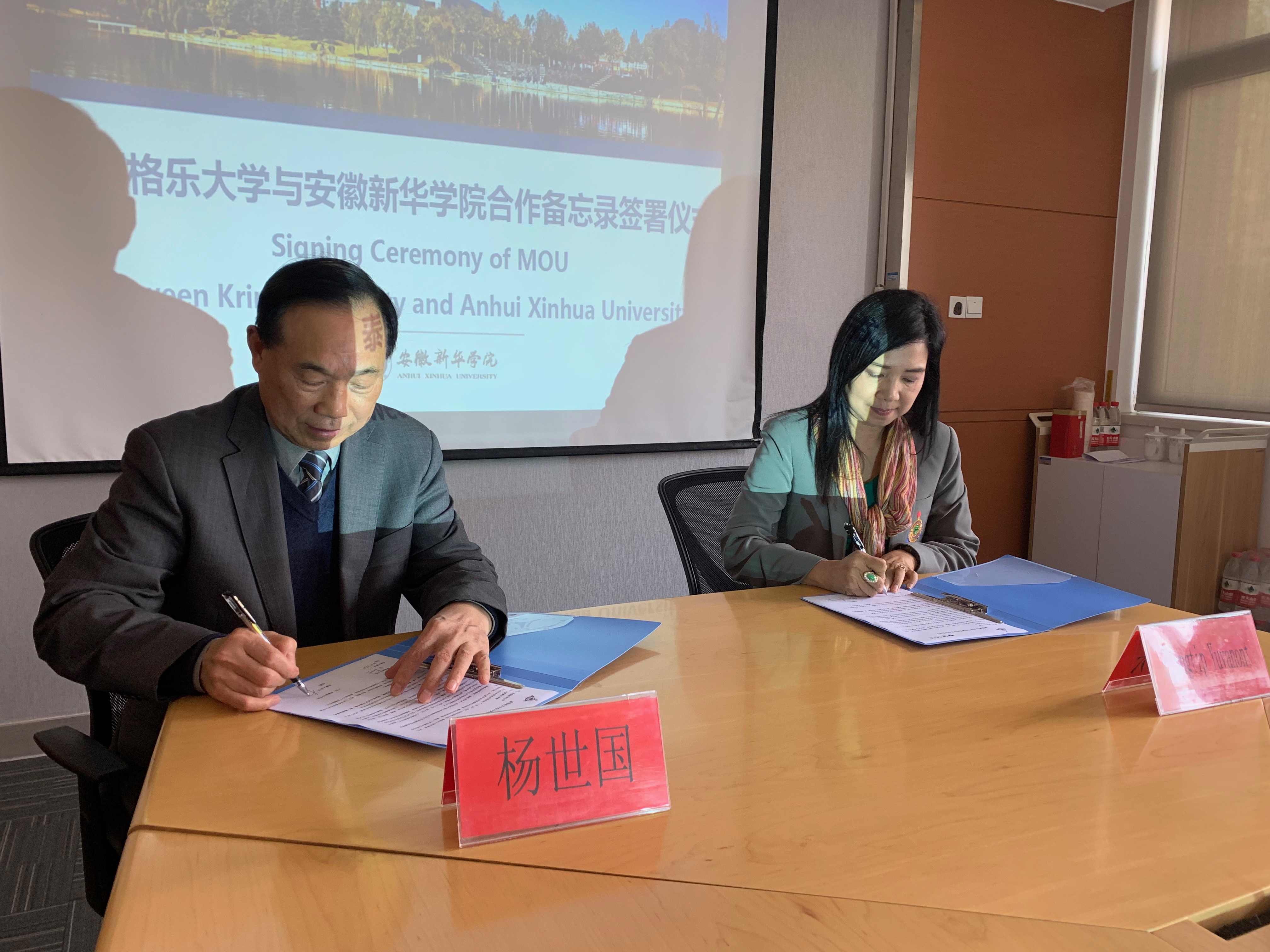 会谈结束时,杨世国作总结。他表示,两校可首先从确立友好合作关系开始,立足学生培养,以pp电子财务管理、会计学等特色专业为依托,不断丰富合作渠道,加强双方的交流。随后,双方举行两校合作备忘录的签约仪式。泰国格乐大学与pp电子正式缔结友好关系,双方互赠校际交流礼品并合影留念。