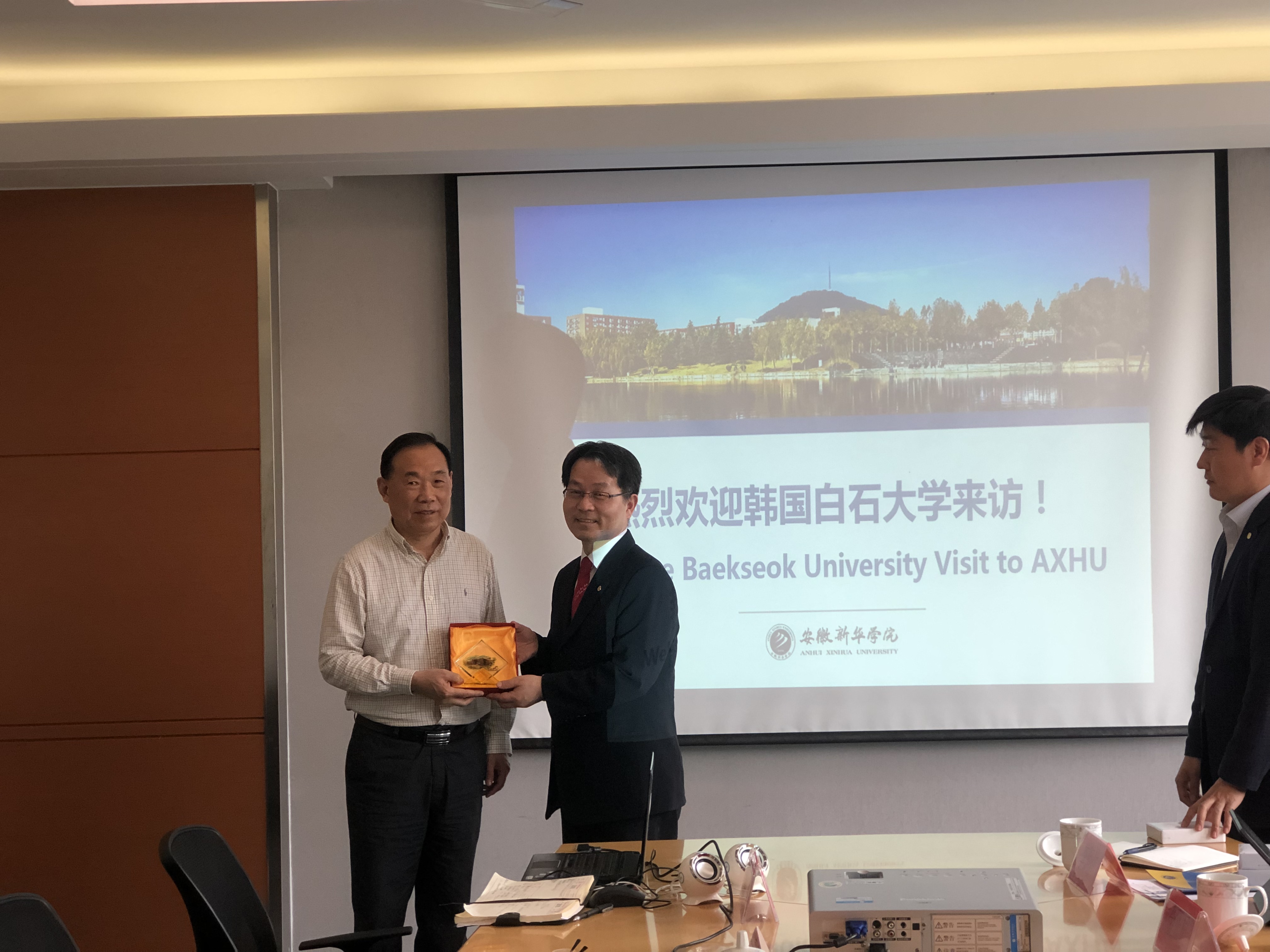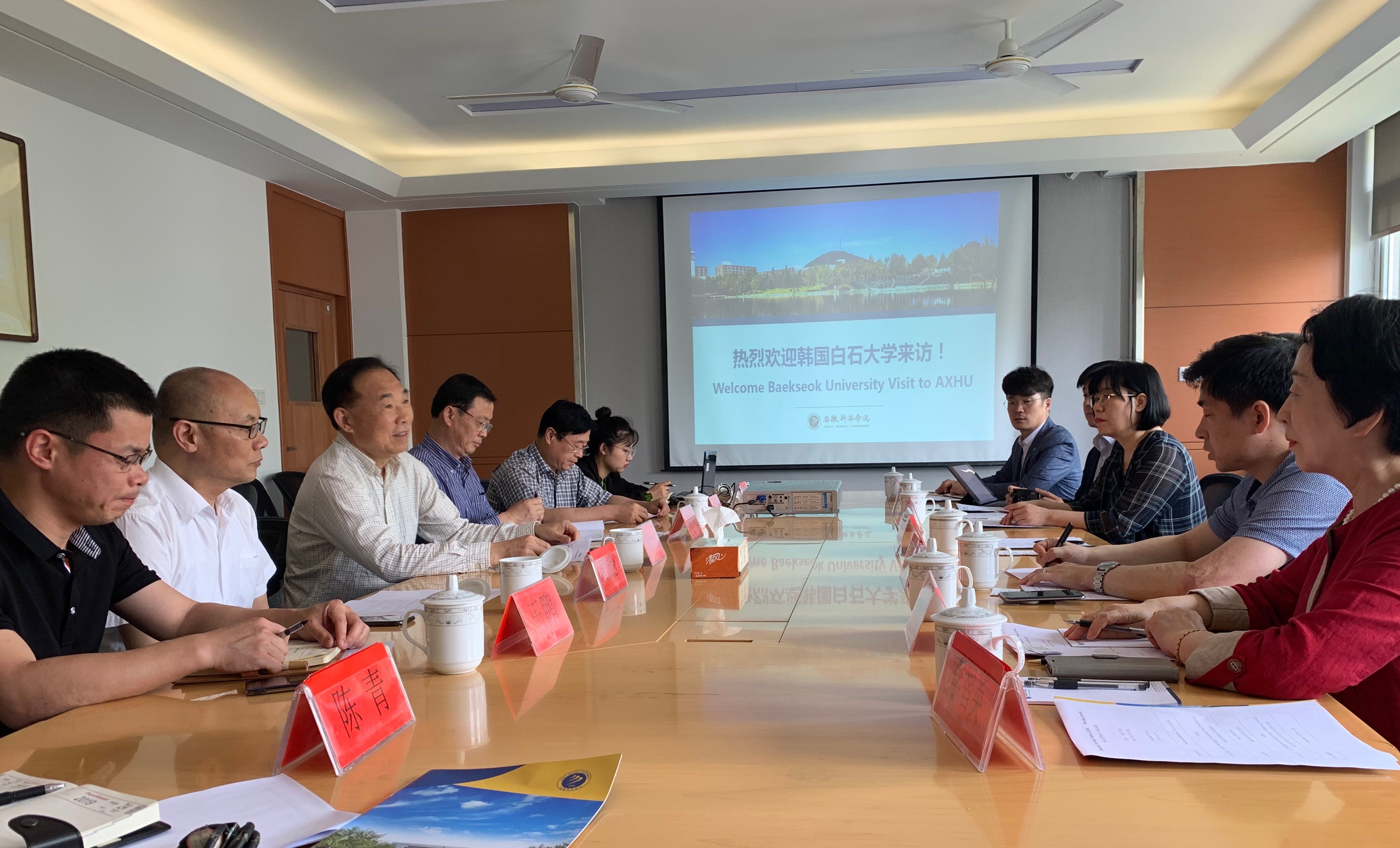 杨世国对李景职博士一行的来访表示热烈欢迎,并介绍了pp电子的建校历史、校园情况、院系设置、国际交流等情况。他说,pp电子官方网站创办于2000年,是安徽省重点建设应用型本科高等院校之一,为安徽省的经济腾飞培养了大量人才。学校占地面积1500余亩,设有11个二级学院和63个本科专业。学校坚持应用型和国际化的办学方向,专门设立国际教育学院和国际交流合作处,通过对外交流、人才引进、海外实习等项目加强学校国际化工作。他表示,在中韩友好的历史潮流下,双方应以此次来访为契机,找到共同点、谋取合作点,希望白石大学研究生院教学处长李景职博士此行能够将培养本硕连读、师生短期交流作为重点工作推进。