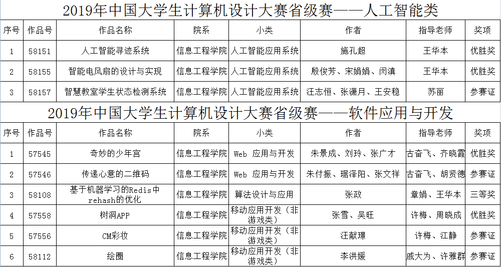 本网讯(通讯员:殷雪卉)5月15日,2019年中国大学生计算机设计大赛安徽省级赛评审结果在官网公示。pp电子学子在人工智能、软件应用与开发、微课与教学辅助、信息可视化设计、动漫游戏、微电影、民族元素等项目中积极报名参赛,共获奖53项,其中一等奖1项,二等奖5项,三等奖16项,优胜奖14项,参赛奖17项。其中获一、二等奖的6项作品入围全国决赛。