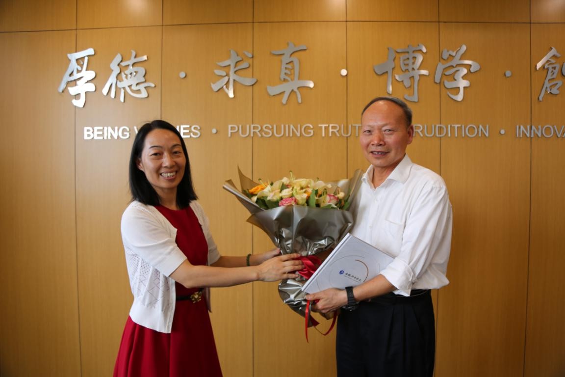 首先,石秀和代表学校为吴兆雪教授送上了衷心的感谢和崇高的敬意。吴教授在学院工作将近十年,在任期间,吴教授为人谦和,兢兢业业,硕果累累,不仅带领原思政部人员成立了马克思主义学院,还成功与合肥新四军历史研究会、安徽革命烈士陈列馆等合作共建思想政治理论课。马克思主义学院的每一个发展、每一份进步,都离不开吴教授的智慧、心血和奉献。临别之际,用两句诗词赠送给吴教授——“晚霞灿烂落红美,满目青山夕照明”,愿吴教授永远像晚霞一样光满天下、普爱天下,爱我们的青年学生、爱我们的青年教师,用马克思主义的光辉引导我们青年一代茁壮成长。