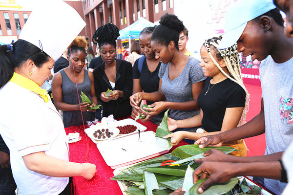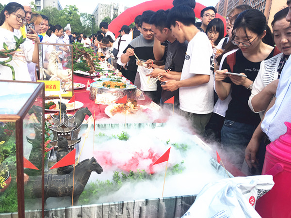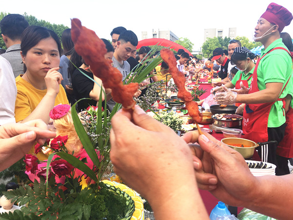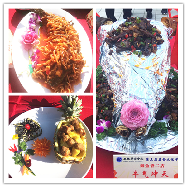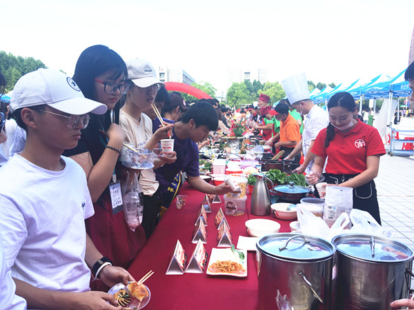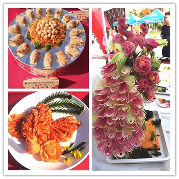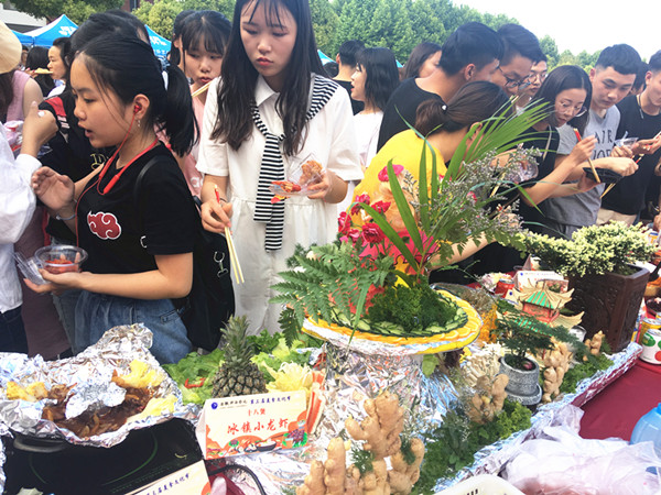 经过前期各单位的精心准备,本次美食文化节,广大师生不仅品尝到了各种特色菜肴、风味小吃和可口点心,更享受到了各餐饮单位诸多的餐饮优惠活动。活动期间各家食堂和餐饮单位精心准备的系列工艺菜品、主题雕刻和水果拼盘,让广大师生在品尝美味的同时充分感受到了中化饮食文化之精髓。活动现场气氛热烈,广大师生与美食零距离接触,积极参与现场美食制作,并对参展菜品进行了品鉴与评选。来自海外的留学生们也在美食节现场参与了“包粽子”活动,折叶、填米、绑绳……新鲜而又充满乐趣的手工制作让来自异国的她们充分感受到了中国传统的美食文化。食堂的面点师傅还现场教授学生们制作面点花,“姹紫嫣红”、栩栩如生,师傅们娴熟的技艺令在场的师生们啧啧称叹。