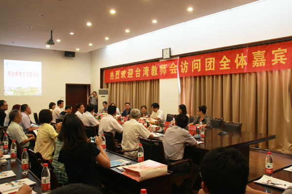 本网讯(记者 代玲玲,摄影 代玲玲)8月8日下午,台北市教师会代表团一行25人访问pp电子官方网站,全国台联、省台联、合肥市委相关领导陪同访问。pp电子官方网站副院长杨世国、马凤余会同办公室、教务处、团委、国学研究院、国际教育学院等单位相关负责同志会见来宾。