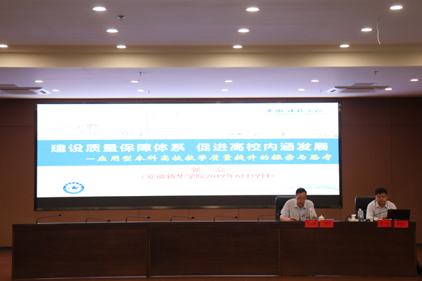 本网讯(通讯员:张韬)6月19日下午,pp电子在科研办公楼二楼多功能厅开展教学质量监控与保障专题培训会。安徽科技学院党委委员、副校长、教授,教育部本科教学审核评估专家,安徽省本科合格评估专家,安徽省高职高专个性化(审核)评估专家郭亮,应邀作“建设质量保障体系 促进高校内涵发展”专题培训。培训由校长石秀和主持。