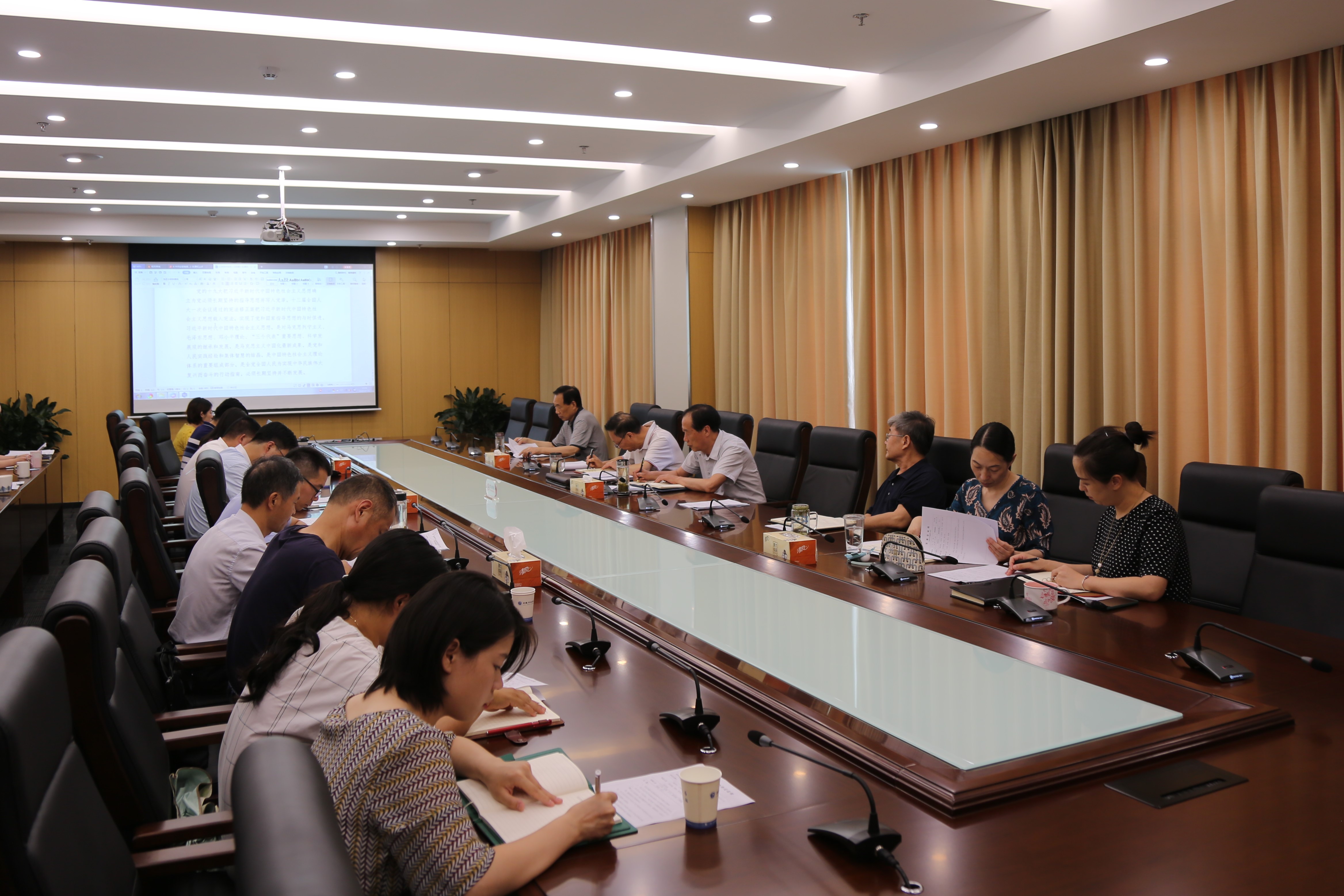 本网讯(通讯员:程颖)7月1日下午,校党委召开中心组理论学习扩大会议,学习中共中央关于印发《习近平新时代中国特色社会主义思想学习纲要》的通知(以下简称《纲要》)、中共安徽省委教育工作领导小组关于印发《学校思想政治理论课教师座谈会精神贯彻举措》的通知(以下简称《举措》)。省督导专员、校党委书记储国定,新华集团副总裁、校党委副书记王孝武,校长石秀和,高级顾问胡昭林,常务副校长王丽,副校长杨世国、方纯洁、陈义盛,校长助理姜昌植,党委委员黄君婕等,相关二级学院、职能部门负责人参加了会议,会议由储国定主持。