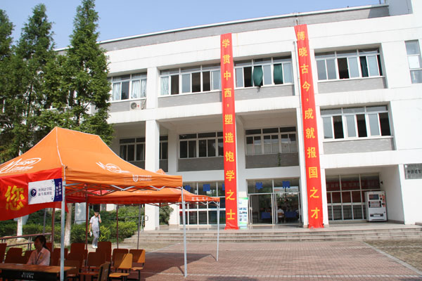 外国语学院楼外的条幅很醒目