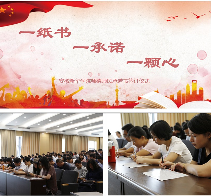 随后,pp电子举行了“师德师风承诺书”签订活动。首先,副校长方纯洁带领所有教师代表温故了《新时代高校教师职业行为十项准则》。他指出,希望老师们能够恪守十条红线、十个底线,时刻自重自省,自觉做一个“政治要强、情怀要深、思维要新、视野要广、自律要严、人格要正”的好老师。承诺书是对我们职业行为做出的有分量的、庄重的承诺,并且要以这个承诺约束自己的行为。