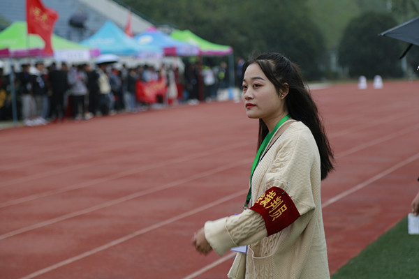 除了各二级学院的志愿者们,还有来自青年志愿者联合会的同学们。“这是我第一次参加运动会,也是第一次做为青年志愿者联合会的成员参与到志愿服务活动中”,来自电子通信工程学院2019级机电一体化1班的周宝强说,“虽然维护看台秩序很辛苦,但我时刻谨记着作为一名志愿者的初衷,我感觉为校运动会做贡献,很满足,很开心。”