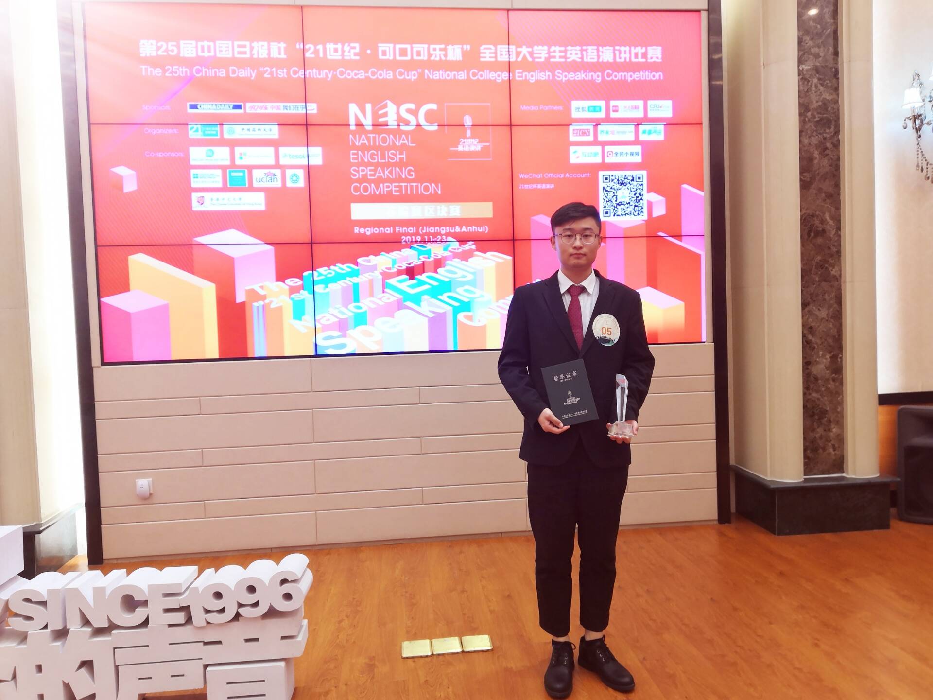 本网讯(通讯员:王喆)11月22-23日,由中国日报社与可口可乐中国联合举办、二十一世纪英语教育传媒承办的第25届中国日报社“21世纪杯全国大学生英语演讲大赛”安徽地区总决赛在南京中国药科大学举办,pp电子官方网站选手李航同学,在学校外国语学院教师王喆的指导下,获得安徽省总决赛季军,并成功入围在京举办的全国半决赛。安徽省前三名分别是安徽师范大学,安徽大学、pp电子官方网站。