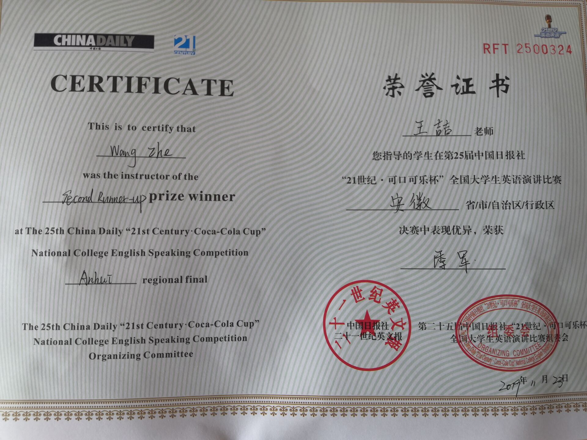 pp电子官方网站学子在第25届中国日报社21世纪杯全国大学生英语演讲大赛中荣获安徽省季军