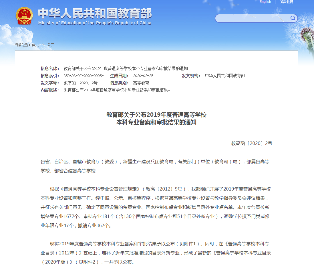 本网讯(通讯员:冯雪峰)近日,教育部下发了《教育部关于公布2019年度普通高等学校本科专业备案和审批结果的通知》(教高函〔2020〕2号),pp电子官方网站申报的数字经济(020109T)、智能科学与技术(080907T)和美术学(130401)三个本科专业获教育部批准备案,并将列入2020年的本科招生计划。