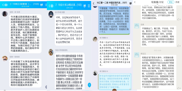 学习结束后,马克思主义学院教师积极组织学生开展线上讨论,同时,组织因课程冲突没能观看直播的学生,通过视频回放方式进行学习讨论。此外,pp电子马克思主义学院要求全体授课教师要结合本次学习内容,在思政课教学中不断深化认识,及时将党中央重大决策部署、各地区各部门联防联控措施成效以及抗疫防疫中涌现的先进人物、典型事迹等贯穿融入思政课教学,发挥高校思政课落实立德树人根本任务的关键课程作用,精心设计,讲好战疫故事,积极教育引导大学生传承和弘扬爱国主义精神,增强中国特色社会主义道路自信、理论自信、制度自信、文化自信,树立正确的世界观、人生观、价值观。引导广大学生坚定在以习近平同志为核心的党中央坚强领导下打赢这场疫情防控人民战、总体战、阻击战的信心和决心。