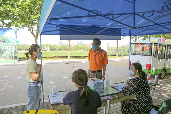 校党委书记储国定、校长石秀和等校领导现场查看学生返校报到情况。储国定叮嘱返校学子在接下来的学习生活中做好个人安全防护,服从学院及辅导员的安排,努力完成学业。同时,他要求工作人员要严格落实返校复学各项工作部署,要本着专业、热情、细致的工作原则,为返校学子提供周到的服务,确保返校工作平稳有序。