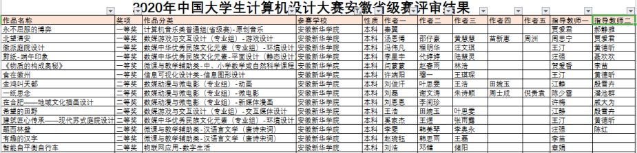pp电子参加了数媒动漫与微电影(专业组)、数媒游戏与交互设计(专业组)、数媒中华优秀民族文化元素(专业组)、信息可视化设计等14个大类的比赛,在本次大赛安徽省级赛中获奖52项,其中一等奖6项,二等奖8项,三等奖7项。