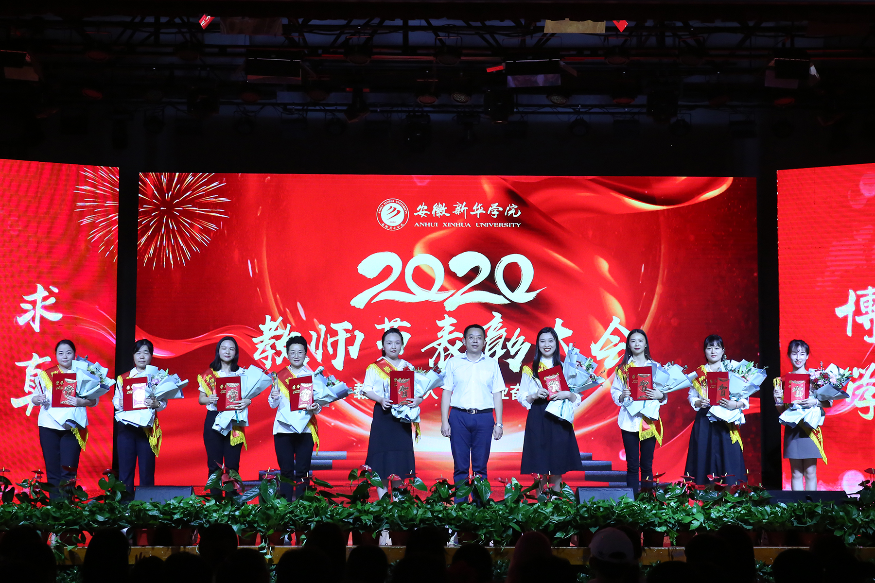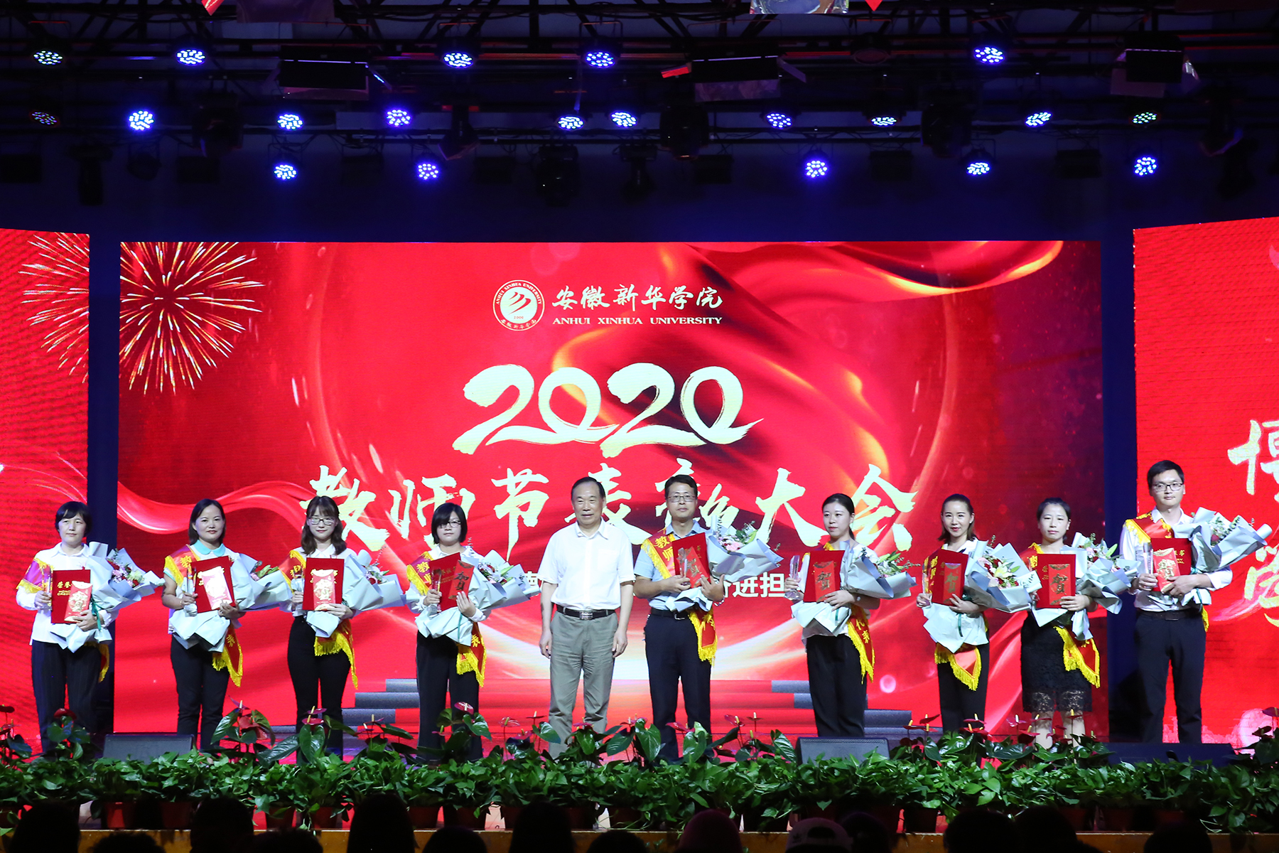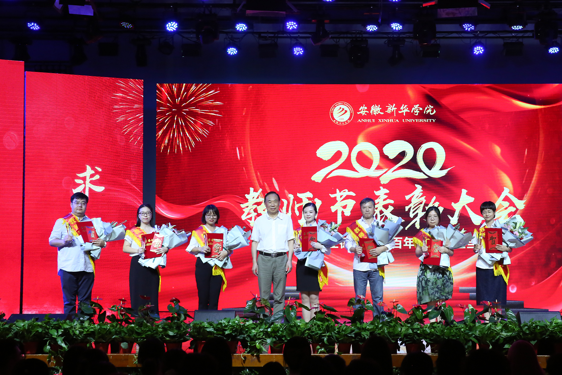 本网讯(通讯员:王伟灿 摄影:翟漱文、陈洞庭)金秋九月,硕果飘香;为人师表,无限荣光。正值第36个教师节来临之际,为表彰献身教育事业、育得桃李芬芳的新华教育工作者,9月9日下午,“二十载立德树人,百年业奋进担当”2020年度教师节表彰大会在pp电子大礼堂举行。本次受到表彰的老师包含省级教坛新秀、省级教学名师,省级以上教学竞赛、优秀线上课堂教师,pp电子官方网站“明德奖”获得者在内的共计79人。新华集团及学校主要领导,各职能处室、二级学院的师生代表们参加了大会。