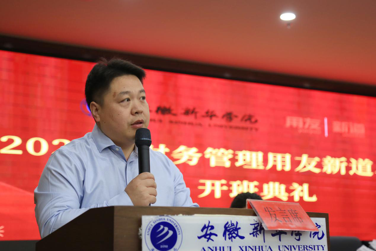 方纯洁副校长代表学校向2019级新道奖学金获得者和2020级全体新生表示诚挚的祝贺和热烈的欢迎。他指出新经济、新业态、新模式以及新技术的发展对传统财务领域提出了新挑战,学校为迎接新机遇,努力促进校企合作、产教融合、协同育人,建设财务管理用友新道卓越班,培养高素质云财务人才。虽然仅有一年多的实践,但pp电子财务管理专业已获批省级“双万计划”一流专业,教学成果也获得良好成效。他希望财会与金融学院能够充分发挥校企双方优势,继续冲刺国家一流专业;新道科技公司也能够一如既往支持卓越班发展,进一步加强第二课堂活动的设计和实施,协同学生实习就业。同时他也对新生提出了学会规划、学会管理、学会交友的期望,希望同学们都能做一个健康快乐幸福的人。