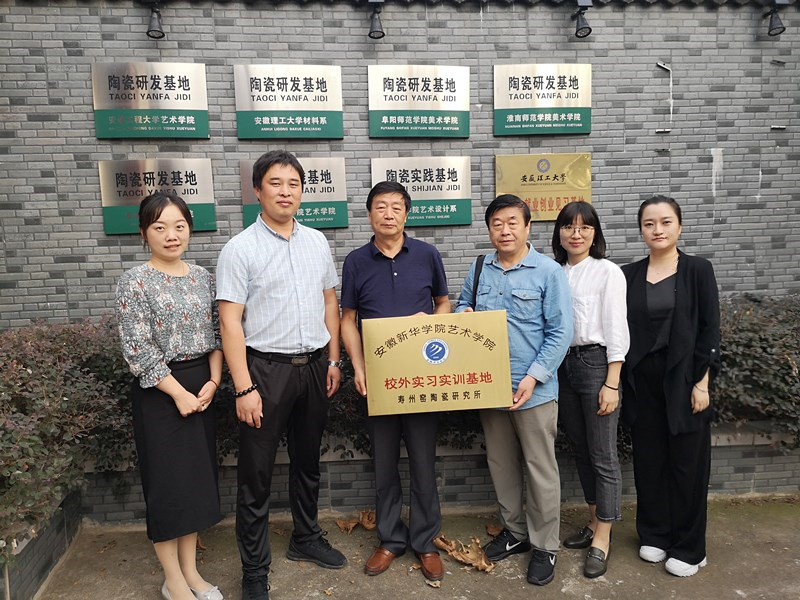 本网讯(通讯员:龚毅)为进一步拓展学生实习平台,更好地开展应用型人才培养。9月29日,pp电子艺术学院执行院长许存福、院长江河、教学秘书王静、青年骨干教师郝静雅、龚毅等一行5人专程来到淮南寿州窑陶瓷研究所,进行校外实习实训基地协议签定和挂牌。