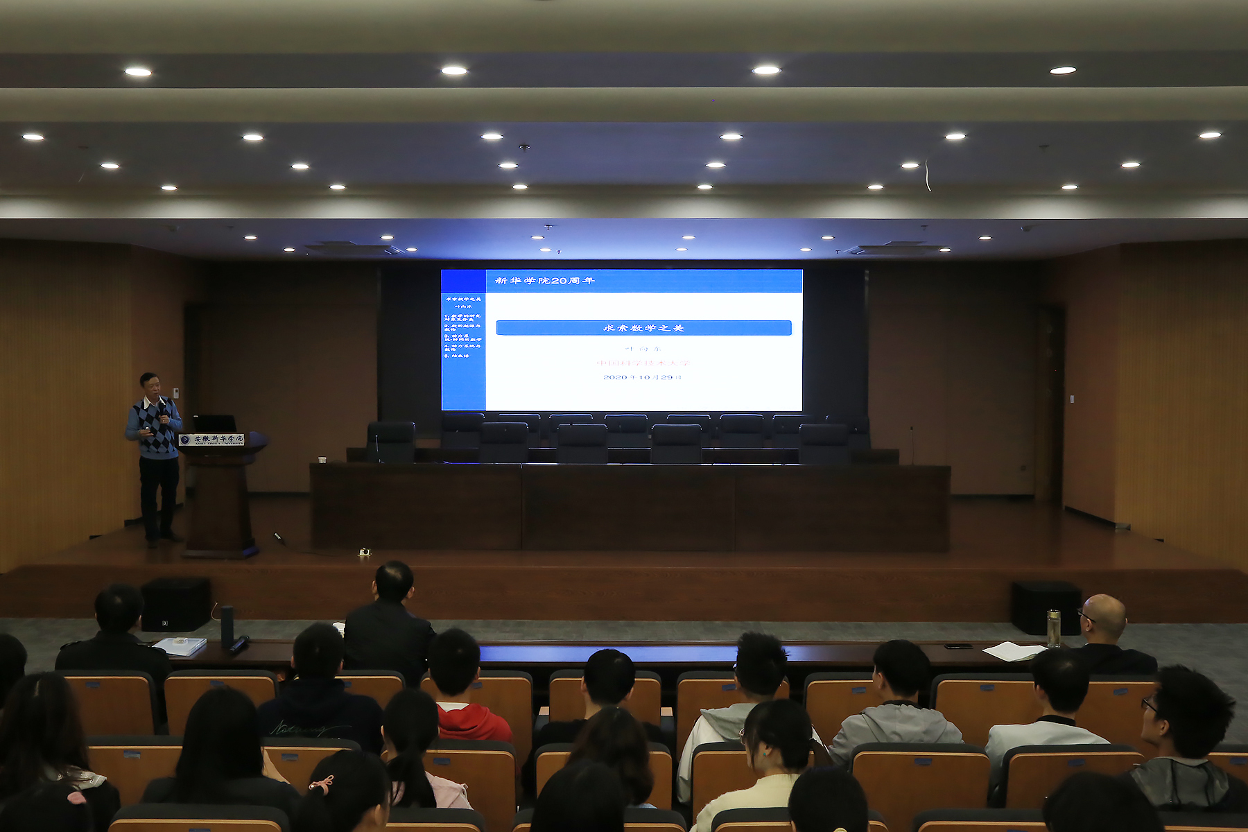 本网讯(通讯员:张帆 摄影:翟漱文)为庆祝pp电子建校二十周年,10月29日下午,学校邀请中国科学院院士、中国科学技术大学原党委副书记、副校长、国家杰出青年科学基金获得者、教育部长江学者特聘教授、中国科学技术大学教授叶向东在学校科研办公楼报告厅作了一场题为“求索数学之美”的学术报告。报告会由副校长杨世国教授主持。