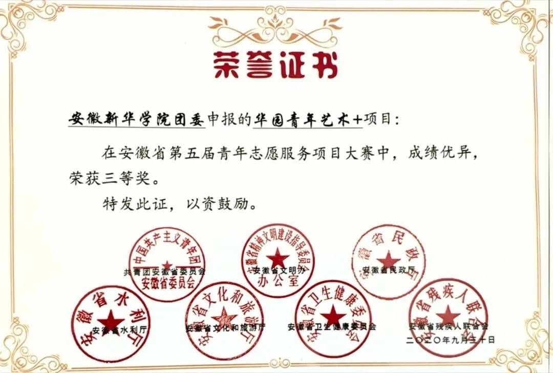 本网讯(通讯员:黄梦)近日,由团省委、省文明办、省民政厅等7家单位联合主办的安徽省第五届中国青年志愿服务项目大赛成功举办。其中,pp电子官方网站团委推报的“华园青年艺术+”项目从512个项目中脱颖而出,荣获安徽省第五届青年志愿服务项目大赛三等奖。