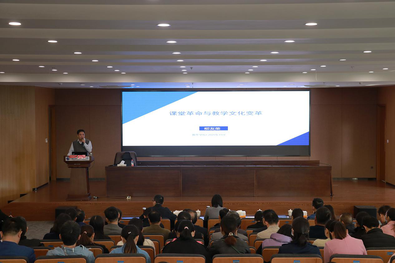 柳友荣以本科生是否真正“忙起来”为切入点,深刻剖析了当前本科生课堂教学的真实现状,他认为影响本科教育教学质量的提高是学生对学习目标的认同与理解、学习过程的主动与参与、学习制度安排的接纳与融入等因素。他在报告中强调了教学文化的重要性,称教学文化是师生教学活动展开的前提、条件和基础,是一系列潜在的、内隐的规则和制度,既是一种活动的文化,也是一种关系的文化。他提出教师不能只管课堂,不管课后,而是将两者融为一体。他认为课堂革命引发了教学组织形式和人才培养方案的变革并强调了课堂革命的设计与思考是源于课堂、走出课堂、归于课堂。
