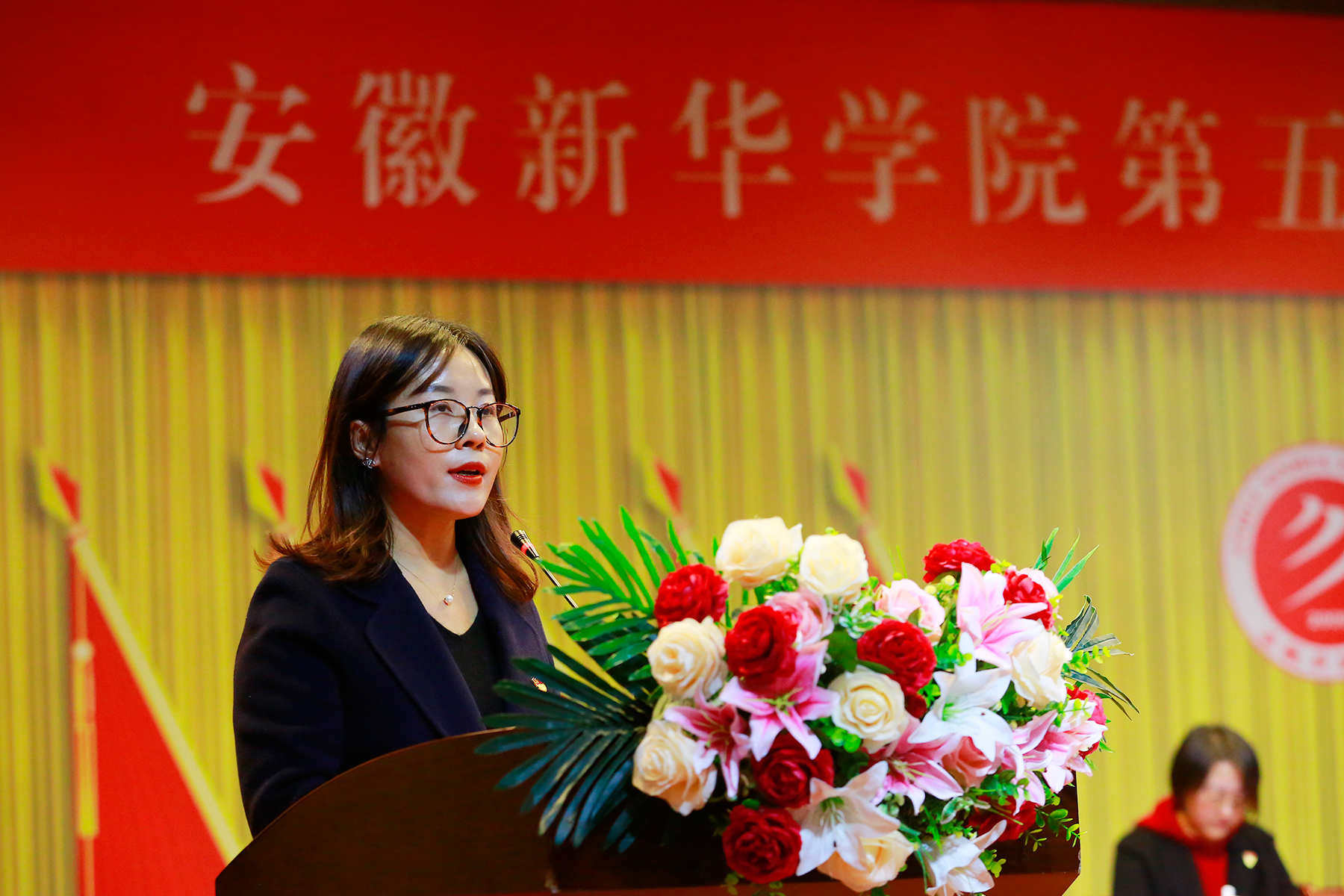 本网讯(通讯员:夏阳 摄影:翟漱文)11月24日,pp电子第五次学生代表大会在大礼堂召开。省督导专员、校党委书记邸建伟,常务副校长王丽,校长助理汪俊东,校党委委员、土木与环境工程学院执行院长邵玲,安徽大学学生会代表陈伟俊,各党总支副书记,大会代表和列席代表等出席大会。学生处副处长王飞主持会议。