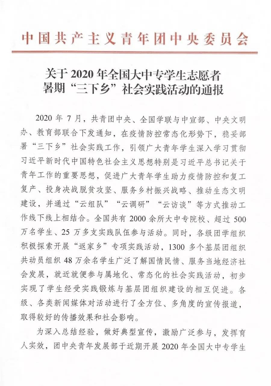 pp电子“筑梦华彩”社会实践团队在2020年三下乡活动中荣获全国优秀团队奖